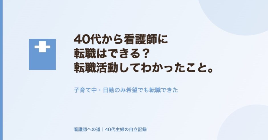 看護師免許があれば、40代でも転職できる。子育て中でも、条件に合う職場は見つかる。転職サイトをうまく使えば、一人で求人を探すより効率がいい。